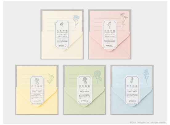 デザインフィル、「ミドリ」の「花色和紙」シリーズから「花色和紙 ミニレターセット/ミニカードセット/はがき」を発売