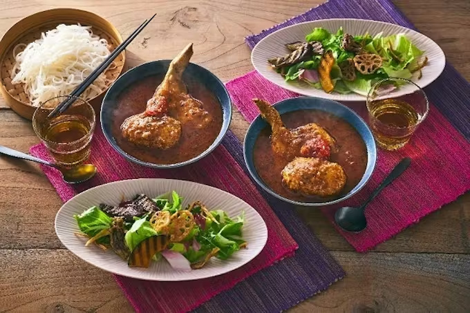 ロック・フィールドが運営する「ロック・フィールドオンラインショップ」と「店舗受け取り(WEB予約)」では、1月から4月にかけて、月替わりでハーブとスパイスを使ったセットメニューを販売している。3月は「野菜と食べる チキンとハンバーグのスープカレー」。販売期間は2月20日から3月19日まで。