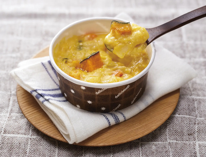 そこで、原材料はそのままで塩分量を微増し、玉ねぎや人参、人気のかぼちゃを増量して味のまとまりやバランスを調整した。
