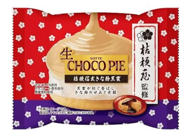 ロッテは、3月1日に、ロングセラーブランド「チョコパイ」がチルドデザートとなった「生 チョコパイ」シリーズから、初の和スイーツの「きな粉黒蜜」味を発売する。山梨の老舗和菓子屋・桔梗屋との約3年ぶり(2023年1月発売 桔梗屋監修 雪見だいふく×桔梗信玄餅)の夢のコラボレーションとなる。ふんわり食感のきな粉ケーキでコクのある黒蜜ホイップをサンドし、きな粉風チョコで包み込んだ。桔梗屋監修のきな粉と黒蜜が紡ぎだす絶妙な味わいと余韻をぜひ楽しんでほしい考え。