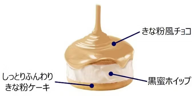 「生 チョコパイ」初の和スイーツが新登場する。山梨の老舗和菓子屋「桔梗信玄餅」で有名な桔梗屋と約3年ぶりのコラボレーションとなる。程よい甘みのきな粉風チョコと、ふんわりきな粉ケーキが、黒蜜味のたっぷりホイップクリームと口の中で重なり合うことで、きな粉と黒蜜の優しい味わいと余韻が楽しめる。本格的な味わいながら、スプーンやフォークを使わず、仕事や家事の合間でも食べやすい仕上がりになっている。