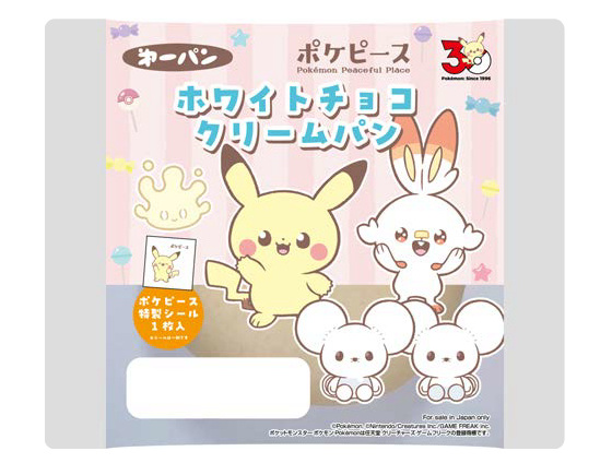 「ポケピースホワイトチョコクリームパン」は、ふんわりとした白いパン生地でホワイトチョコクリームを包んだ。ポケピース特製シール1枚入り。