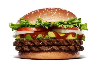 「ダブルスパイシーサルサ アボカドワッパー」は、直火焼きの100%ビーフパティ2枚に、クリーミーなアボカドとアクセントのピクルス、フレッシュなレタス、トマト、オニオンを重ねた。トマトのコクとにんにくの旨味に、6種のハーブ&スパイスでほどよい辛さを加えた「特製サルサソース」で仕上げた食べ応え十分の本格バーガーになっている。