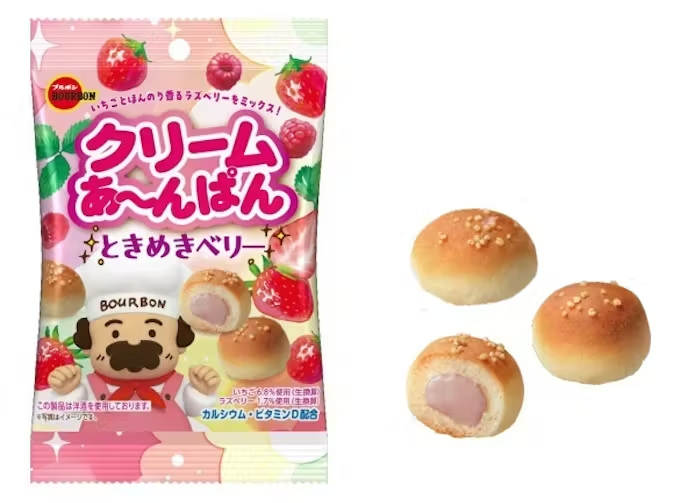 ブルボンは、ひとくちサイズのかわいいスナックパン「クリームあ~んぱんときめきベリー袋」を3月3日から発売する。