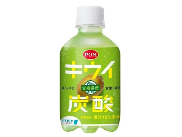 「キウイ炭酸」は、愛媛県産のキウイフルーツの豊かな香りと、すっきりした酸味を炭酸の刺激とともに、ぜひ楽しんでほしいという。