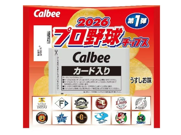 カルビー、プロ野球全12球団の有名選手のカード2枚が付いたポテトチップス「2026プロ野球チップス」(うすしお味)を発売