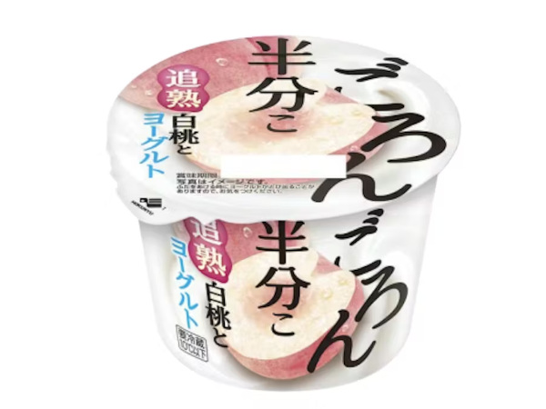 北海道乳業、大ぶりの白桃を1/2個贅沢に入れた「ごろん半分こ 追熟白桃とヨーグルト」を全国のローソンで発売