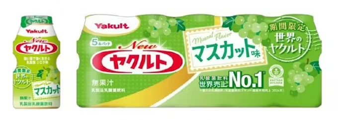 ヤクルト、世界のヤクルトシリーズ「Newヤクルト マスカット味」を期間限定発売、「ギネス世界記録」認定記念パッケージで展開