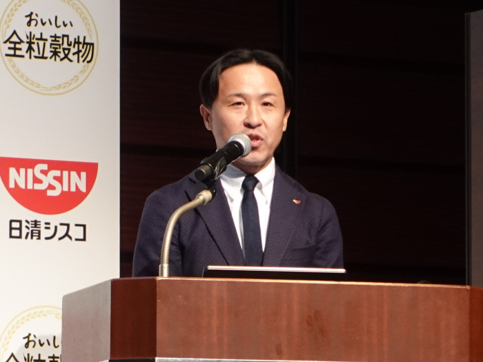 「当社が行った調査(WEB調査 n=2000名 2026年1月)によると、栄養素の重要度は食物繊維がカルシウムに次いで高い比率を示した。また、食物繊維の栄養素等基準値も1日あたり19gから20gに引き上げられた(出典:栄養素等表示基準値(2025))」と、日清シスコ マーケティング部 第3グループ ブランドマネージャー 篠原鎮麻氏。「食物繊維は整腸作用があり、2型糖尿病、がん(乳・胃・大腸)、心筋梗塞、脳卒中の発症リスクの低下との関連が報告されている(出典:厚生省 健康日本21アクション支援システム~健康づくりサポートネット~)」と、食物繊維が注目される理由について説明する。「こうした中、欧米を中心に“ファイバーマキシング”が注目を集めている。これは、食物繊維の摂取量を積極的に増やすこと。健康志向が世界的に強まる中、腸内環境の改善や健康の増進を目的としたヘルストレンドとしてTikTokなどのSNSを中心に話題になっている」と、ファイバーマキシングが流行していると解説。「腸活、消化器系の健康、腹持ちのよい食へのニーズの高まりを受けて、パスタ、パン、クラッカー、栄養バーなど食物繊維を付加した商品は多様に増えている」と、今年の新しい腸活の形になるのではないかと注目する。「世界の食物繊維に関する市場規模も2025年は1兆3640億円であったが、2034年には3兆円にまで拡大すると予測されている。日本においても食物繊維の需要は拡大傾向となっていることから、さらなる伸長が期待される」と、食物繊維は世界的に見ても、国内市場においても、フォローの風が吹いていると訴えた。
