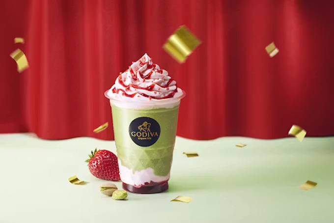 「100周年アニバーサリー ストロベリー ピスタチオ ショコリキサー」は、ゴディバ100周年を記念して、フランスの名匠とともに生み出した特別なショコリキサー。甘酸っぱいストロベリーの華やかさに、ピスタチオの香ばしさが溶け合い、豊かな余韻を奏でる。ホイップクリームには「米糀ミルク」を加え、軽やかで洗練された口あたりに仕上げた。