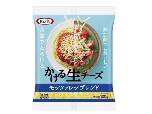 「クラフト かける生チーズ モッツァレラブレンド」は、チーズ分中モッツァレラチーズを20%ブレンドした、まろやかでクセのない味わいが特長になっている。サラダへのトッピングはもちろん、トマトパスタなど酸味のある料理へのトッピングがおすすめだという。