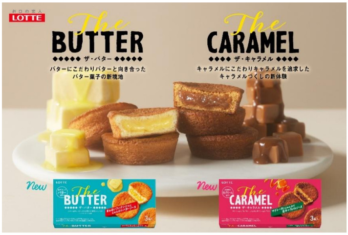 ロッテは、13年ぶりの新ビスケットブランド「Theシリーズ」から、フィナンシェの「The BUTTER」とマドレーヌの「The CARAMEL」を、3月24日から東日本エリア(静岡を含む)で先行発売する。