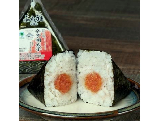 「手巻 辛子明太子」は、明太子の粒感と旨味が特徴のおむすび。辛みの中にも昆布の旨味を感じる味わいに仕立てた。持続可能な漁業を実現しているアラスカ産のスケトウダラの卵巣を原料とした明太子を使用している。