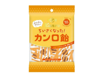 粒のサイズを従来比約60%(体積比)と小さくし、試してもらいやすいよう内容量も食べきりサイズにした。さらに、使用するしょうゆは小麦不使用のものを採用し、素材を厳選。粒が小さくなっても満足できる味わいを追求した。パッケージはドット柄の温かみあるかわいらしいデザインで小さくなったことや商品のやさしさを表現している。子どもも高齢の人も安心して食べられる“みんなにやさしい”カンロ飴となっている。