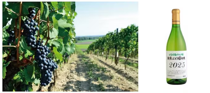「ゴールドワイン甲州 2025」は、日本を代表する白ワイン用の品種「甲州」を100%使用。新巻産の「山梨ヌーボー」として解禁日に合わせて発売する。「甲州」は日本固有のぶどう品種として長い歴史を持ち、近年では国内外のワインコンクールでも高い評価を受けている。柑橘の香りとミネラル感を感じる、奥行きのある味わいの辛口白ワインで、蕎麦や天ぷらなどの和食との相性が抜群だとか。軽やかで飲みやすく、甲州ならではの繊細な旨味をしっかりと感じられる一本になっている。