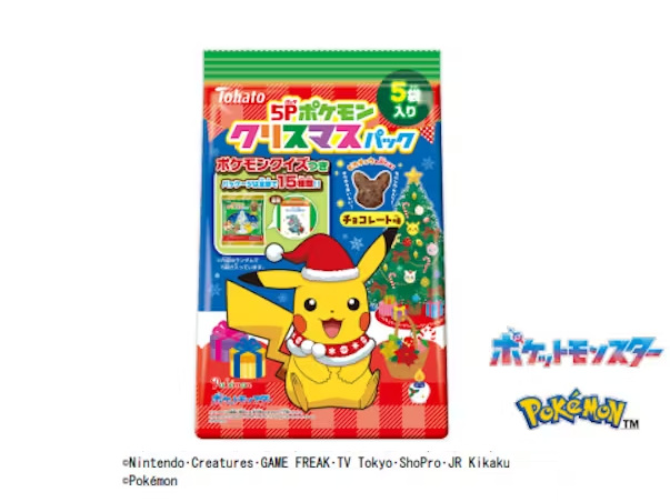 東ハトは、10月13日から「5Pポケモンクリスマスパック チョコレート味」を期間限定で発売する。