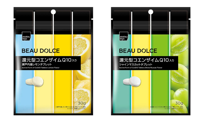 「未来の常識を創り出し、人々の生活を変えていく」をグループ理念に掲げ、日本全国47都道府県に3600超の店舗、海外ではアジアを中心とする6エリアに82店舗(6月末現在)のドラッグストア・調剤薬局を展開するマツキヨココカラ&カンパニーは、コスメライクなパッケージとともに美容サポート成分を配合した、新発想の美容おやつブランド「matsukiyo BEAU DOLCE(マツキヨ ボウドルチェ)」に、シリーズ初となる「還元型コエンザイムQ10」を配合した新商品「還元型コエンザイムQ10タブレット(瀬戸内産レモン/シャインマスカット)」を、10月11日に全国のマツモトキヨシグループ、ココカラファイングループの店舗(一部店舗を除く)と同社オンラインストアで販売を開始する。