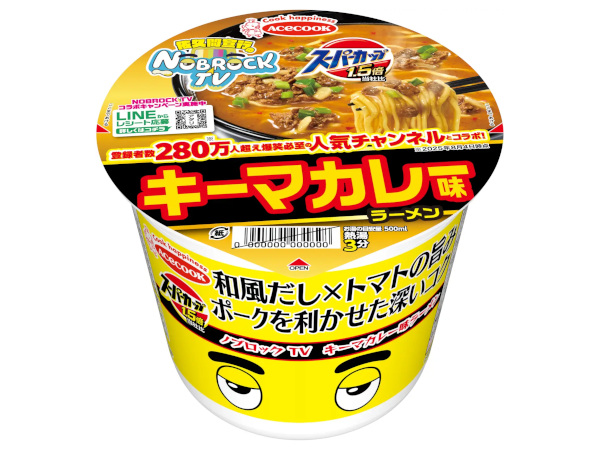 エースコック、カップめん「スーパーカップ1.5倍×NOBROCK TV キーマカレー味ラーメン」を発売