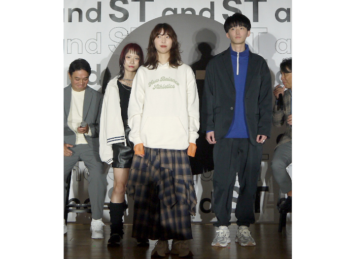 ニューバランスジャパン 常務取締役 営業本部長の江川英孝氏は、「当社では、スポーツだけでなくライフスタイルを融合したファッションシーンを創造し、展開を拡大していきたいと考えている。その際に、今回の『and ST』との取り組みが大きな追い風になると期待している」と、実際に「new balance」とand STグループのファッションを組み合わせたミックスコーディネイトを披露。