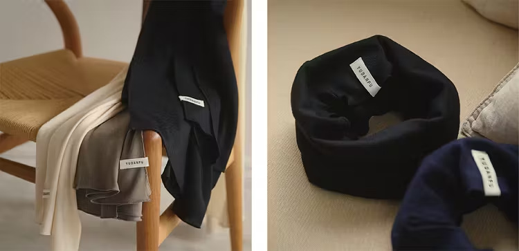 「ワイドストール」は身体をすっぽりと包む大判(サイズ:150cm×72cm)で、肩掛けやひざ掛けとしても使用できる。筒状の「ネックウォーマー」(サイズ:53cm×23cm)はかぶるだけで首元を優しく温める。秋冬シーズンのみならず、オフィスや自宅など、室内における快適な体温調整にも一年を通して活躍する。どちらのアイテムも、生地の上質感を最大限に活かすため縫製はシンプルに仕上げた。カラーはベージュ、ブラック、ネイビー、モカ、モスグレーの5色展開となる。「YUDANFU」の素材には、2月に発売された「YUDANGI」の開発から生まれたウール100%を原材料としたオリジナルスムース生地を採用した。上質な柔らかさ、なめらかな肌触り、ウールが持つ優れた体温・湿度調節機能によって、一年を通して快適な使い心地が特長となっている。思わず「油断」してしまうほど付け心地が良く、仕事や家庭、趣味など、生活の様々な場面にも合わせることができる。また、防臭性、防汚性を備え、しわになりにくい点も特長だという。