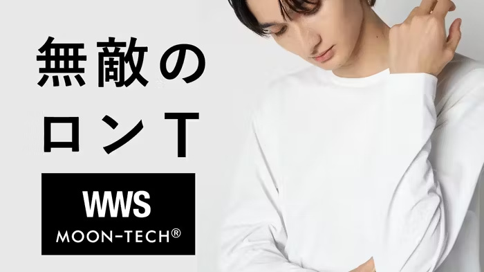 作業着スーツ発祥のボーダレスウェアブランド「WWS/ダブリューダブリューエス」(以下、WWS)を企画・販売するオアシスライフスタイルグループは、東レ発のスピンオフベンチャー・MOONRAKERS TECHNOLOGIES(以下、MOONRAKERS)と共同開発した、汗ジミ防止・吸汗速乾・消臭・防汚・皮脂除去など先端テクノロジーによる12個もの機能性を搭載した「無敵のロンT」の一般販売を11月14日から開始する。同商品は、応援購入サービス「Makuake」において先行発売を行い、目標金額の8000%越えとなる応援総額2400万円を突破するなど大きな反響を得ている。