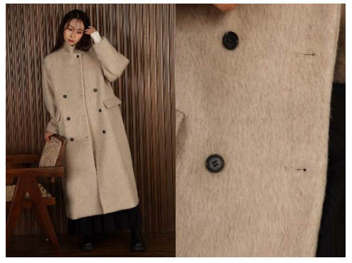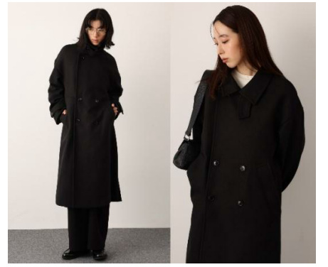 「起毛 ダブル ロングコート」は、今年のトレンドのシャギー素材で重厚感がある肉厚な生地とのこと。美しい毛並みで高級感がある見た目になっている。なお、素材の特性上摩擦等でピリングが発生する。無理に引っ張らず、ハサミで取り除いてほしいとのこと。オーバーサイズの今年らしいシルエットのシャギーコート。ダブルのAラインコートで着丈も長めの設定になっている。センターベントは動くたびに裾が広がり綺麗なシルエットを作り出す。ラペルのボタンを上まで止めると、スタンド襟としても使える。袖もアームのゆとりをたっぷりと取る事でインナーのニットもごわつかず着てもらえる。シャツやシャギーニット、スウェット、パーカーなど幅広いトップスとの相性が良く、デニムやワイドパンツ、フレアパンツと合わせればモード感のある着こなしに。スラックスとのきれいめコーデや、カーゴパンツと合わせたカジュアルスタイルも楽しめる。