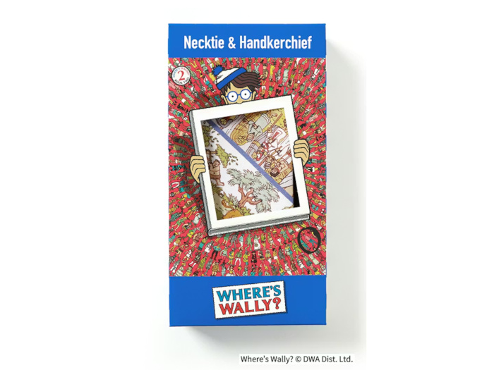 「ウォーリーをさがせ!」は、全世界で7000万冊以上を売り上げ、38ヵ国、30言語に翻訳されているベストセラーの絵本。今回は、洋服の青山とウォーリーのコラボレーション企画第二弾として、「ウォーリーをさがせ!」の世界観を存分に生かしたネクタイと、ギフトでもらっても重宝するデザインのハンカチがセットになった。