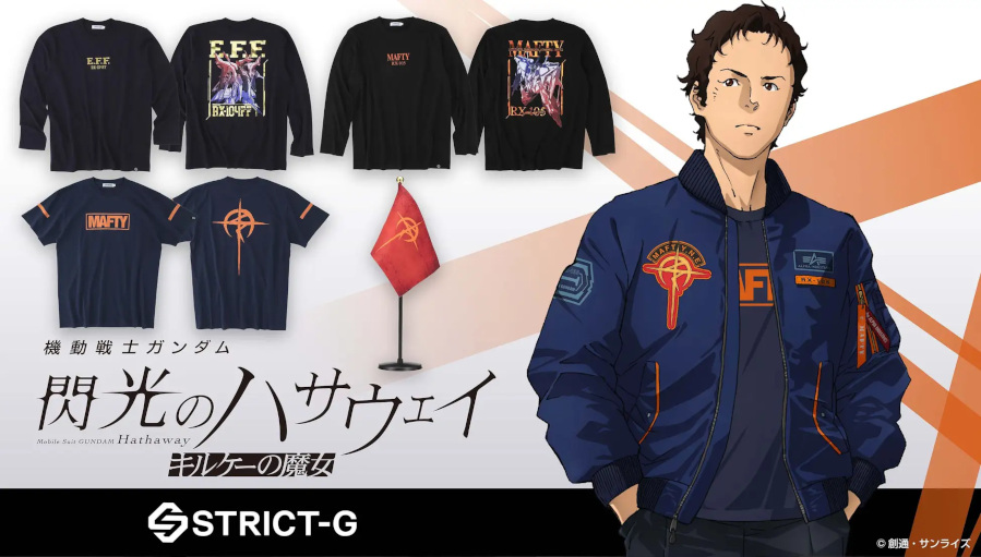バンダイ ライフスタイル事業部は、ガンダムの世界観を取り入れたアパレルショップ「STRICT-G」において、12月20日に、「機動戦士ガンダム 閃光のハサウェイ キルケーの魔女」から、Tシャツ1種、ロングスリーブTシャツ2種、ミニフラッグ1種の発売を開始、バンダイナムコグループ公式通販サイト「プレミアムバンダイ」では、12月3日から、予約販売を開始する(発売元:バンダイ)。