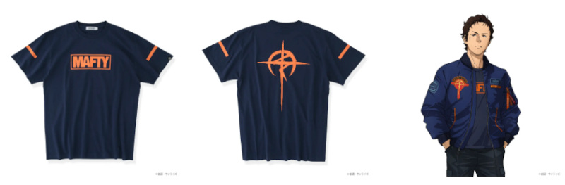 STRICT-G「機動戦士ガンダム 閃光のハサウェイ キルケーの魔女」Tシャツ マフティーロゴは、フロントにBOXロゴ、背中にマフティーマークデザインのTシャツとなっている。描き下ろしイラストで、ハサウェイ・ノア着用デザイン、MA-1ジャケットとのコーディネートも楽しめる。