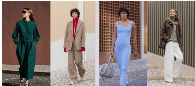 パウダーライラックやスカイブルーの柔らかな色合いが、季節に軽やかさをもたらす。トーンを揃えたテーラードアイテムは、鮮やかなレッドのニットと合わせコントラストを演出。ボリュームスリーブドレスはバックルベルトのディテールがアクセントになっている。サテン素材のセットアップやミラノリブニット、ビスコースのニットTシャツなど季節にふさわしいファブリックを取り入れたコレクションが、春夏のスタイルに心地よさを添える。