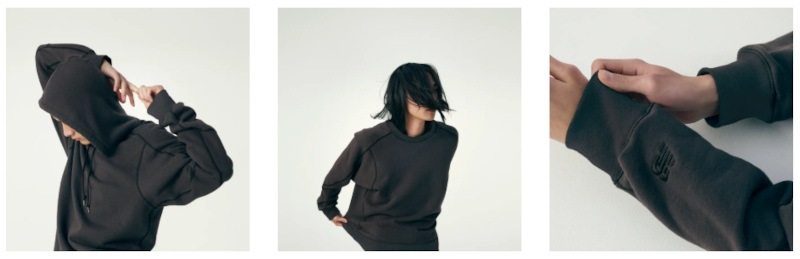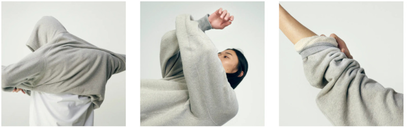デザインパターンとして袖は、トレンチコートのように腕を上げやすいラグラン仕様で、肩の上にシームが来ないように接ぎ合わせることで、着心地の良さを追求。身頃はボリューム感を持たせ、スウェットと身体の間にゆったりとした「間」が生まれるようにした。「レギュラーフィット」と「オーバーサイズフィット」の2種10サイズを用意し、好きなFitを選べる(店舗によって異なる場合がある)。