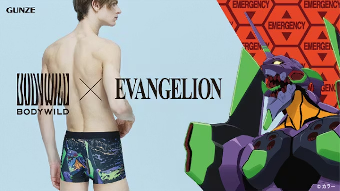 グンゼは、アンダーウェアブランド「BODY WILD(ボディワイルド)」から、シリーズ放送開始から30周年を迎えた「エヴァンゲリオン」シリーズとの限定コラボコレクション(ボクサーパンツ、ソックス)を、1月29日から発売している。同コラボレーションの共通テーマは「シンクロ率」。「BODY WILD(ボディワイルド)」が誇る「CUT OFF(カットオフ)」技術と、作中の象徴的なグラフィックが融合した。
