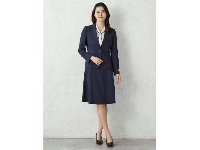 商品特長は、フランス企画DELEGANT社のT/R先染め素材を使用した上質なグレンチェック柄となっている。縦7%・横13%の高ストレッチ性能によって、動きやすく快適な着心地を実現した。家庭で洗えるウォッシャブル機能を搭載し、手入れが簡単だという。ジャケットは春夏向けのサップ裏地使用で涼しく、袖は1ボタンの開き見せ仕様・パンツはトレンドのテーパードシルエット、スカートは足さばきの良いフレアデザインとなっている。