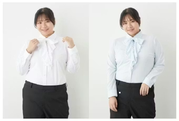 同商品は、「大きいサイズでも可愛いデザインのブラウスが欲しい」という消費者の声に応えて開発した。i-shirtの特長である圧倒的な形態安定性(形態安定性・完全ノーアイロン:メンケン品質検査協会 品質検査報告書No.OS-2408883から確認およびメンケン品質検査協会 生地品質検査報告書No.OS-2405151から確認)と吸水速乾機能(カケンテストセンター 試験報告書No.OS-25-064586から確認)を備えた素材を採用し、開発に時間をかけて実現。さらに、ボタンで着脱可能なリボンを付け、取り外すとスキッパーブラウスとしても着用できる2WAY仕様にした。フレッシャーズの人々が、入学式からビジネスシーンまで幅広く活用できる洗練されたブラウスとなっている。