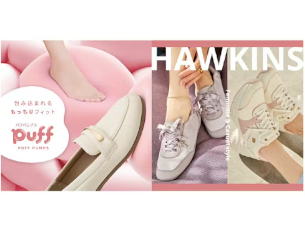 「HAWKINS」からは、フェミニン×カジュアルでおしゃれを楽しめる「フェミカジスニーカー」が新登場。きちんと感と抜け感を兼ね備え、普段のコーディネートを華やかに仕上げてくれる。