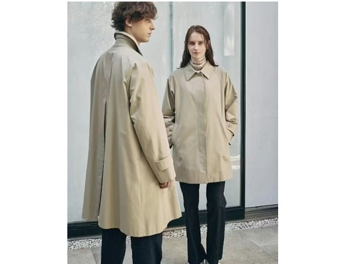 既存の「100年コート」スタンダードモデルに比べて生地重量を15%軽量化した耐久はっ水性をもつコットンギャバジン生地を開発。ライナーをなくした総裏仕立てで軽やかに羽織れる。比翼仕立てのミニマルデザインに、後身頃のインバーテッドプリーツによる優雅なテントラインシルエットが特徴で、丸みを帯びた襟により洗練された雰囲気に仕上げている。コート専業57年の同社工場「サンヨーソーイング 青森ファクトリー」で生産し、職人による手縫いや空中プレスなどの技術によって、軽やかさと立体感を両立させた。ビジネスはもちろん、休日のカジュアルスタイルにも合わせやすく、温暖化が進む現代でも本格的な仕立てのコートを気軽に楽しめる一着になっている。