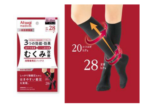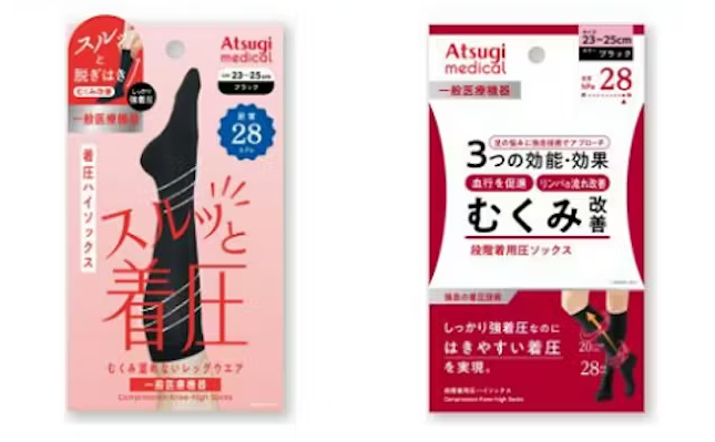 アツギ、「Atsugi Medical」から着脱しやすく窮屈さを感じにくいはき心地と高い着圧値を両立した一般医療機器ハイソックスを発売