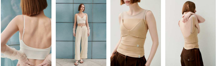 スポーツウエア由来の機能素材を日常のファッションへと落とし込み、ひんやりとした肌触りと軽やかな着心地を実現した。接触冷感機能、吸水速乾機能素材を使用することで、暑い季節もストレスフリーに着用できる。機能性とデザイン性を両立し、レイヤードスタイルの幅を広げるインナーシリーズを提案する。