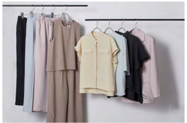 サマナチュラシリーズとは、さらっとしたナチュラルな風合いが夏のおしゃれを彩り、着るだけで「サマ見え」するシリーズ。リネンのような風合いなのにおうちで洗えてシワになりにくい、おしゃれ着の風合いをそのままに、イージーケアが叶う働く女性にぴったりのアイテムがカセット服で揃う。