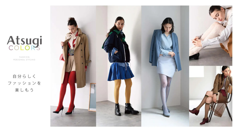 アツギオンラインショップ内アツギカラーズ特集ページにおいて、スタイリストによるコーディネート提案を掲載中。気になるこの色、どうやって活用したらいいの?という疑問に答える。