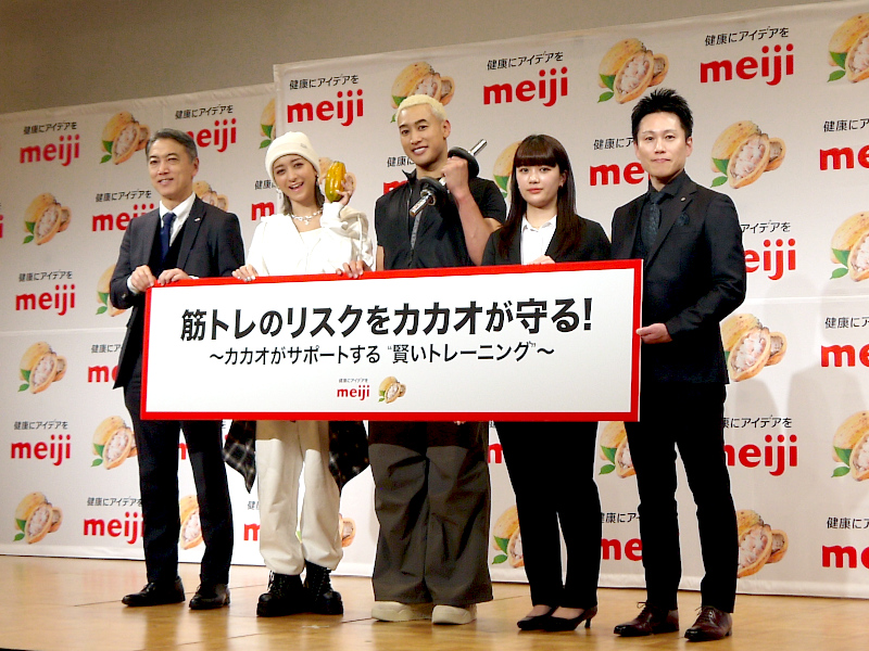 明治、高カカオチョコレートの健康価値について研究発表、関口メンディーさんと池田美優さんが筋トレのリスクと対策を学ぶ