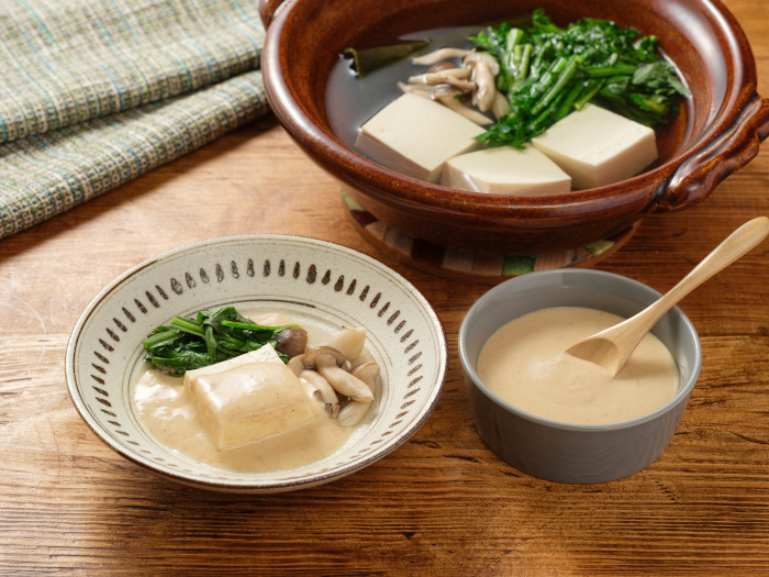さらに今回、管理栄養士・フードコーディネーターの渥美まゆ美氏に、年末年始に向けた「胃疲れ解消レシピ」を考案してもらった。「あったか湯豆腐ヨーグルトみそだれ」は、胃に負担が少なく良質な植物性のたんぱく質がとれる豆腐と、胃腸の動きを活発にしてくれる働きがあるヨーグルトを使った湯豆腐。また、発酵食品である味噌を組み合わせて、胃に負担が少なく体の回復を助ける1品に仕上げている。