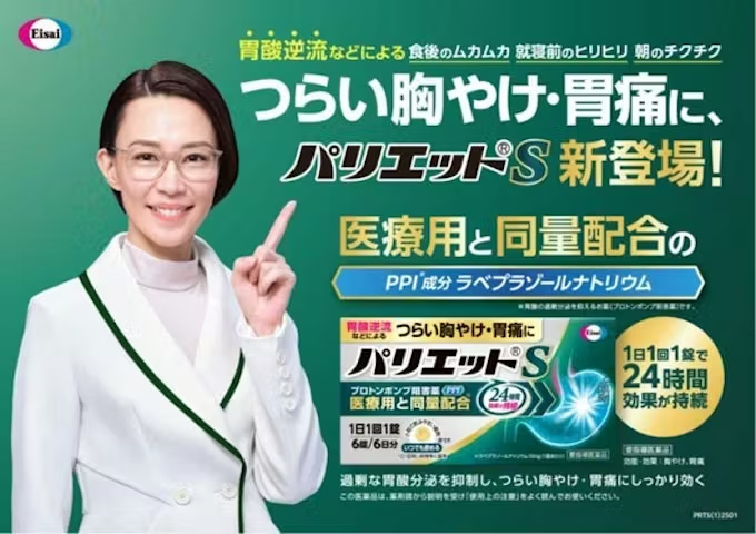 同社の「パリエット S(要指導医薬品)」(パリエット Sは、販売時に薬剤師による説明を必要とする要指導医薬品に該当する)は、PPI成分(ラベプラゾールナトリウム)を医療用と同量配合し、つらい胸やけ・胃痛に対して、1日1回1錠で24時間効果が持続。食前食後に関わらず、症状を感じたときに飲める(1日1回同じ時間帯に服用)。胃の不調を感じやすい12月も、快適で安心な毎日を願う生活者の人をサポートしていく。