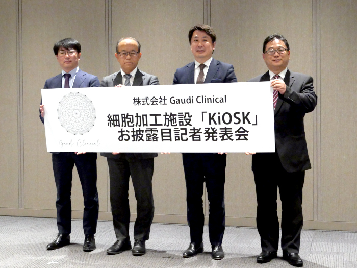 Gaudi Clinical(以下、ガウディ クリニカル)は、医療機関近接型コンパクト細胞製造ユニット「KiOSK(キオスク)」の完成披露記者発表会を1月22日に開催した。発表会では、は「KiOSK」の事業構想および施設概要、今後の展開について説明すると共に、昨年12月に再生医療等安全性確保法下における細胞加工施設として「適合」を取得した「Gaudi Clinical KiOSK新日本橋」(以下、KiOSK新日本橋)の施設を公開した。