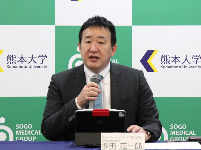 調印式後の記者説明会で、総合メディカルグループの多田氏は、「今回の包括的連携協定は、単なる大学と企業の連携ではなく、熊本から日本の医療と地域社会の未来を一緒に創っていくための第一歩となる。熊本大学が持つ高度医療や研究成果、人材育成の力と、当社が地域医療や在宅の現場で積み上げてきた実装の力、人財を軸に結びつけていくスタートラインに立ったと考えている」と、包括的連携協定を締結する意義を説明。「日本の医療は技術や専門性ではトップクラスにある一方で、病院から地域、在宅へと患者が移っていくプロセスに課題があると感じている。高齢化が進み、慢性疾患が増える中で、医療やケアは病院の中だけで完結するものではなくなってきている。本当に必要なのは、制度や設備ではなく、異なる専門性や立場を持つ人々が、いかに有機的に連携して患者を支えていけるかにある」と、医療の未来を左右するのは現場で患者を支える“人財”なのだと強調する。