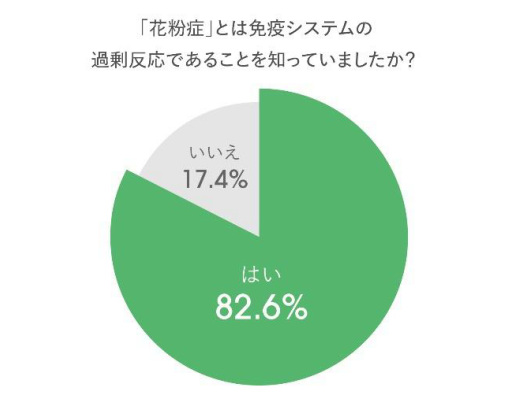 調査では、花粉症が免疫の過剰反応によって起こる症状の一つであることを理解している人は82%に上り、メカニズム理解が広く浸透していることがわかった。