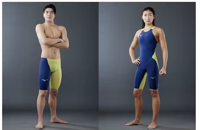 「GX・SONIC ROYAL」を着用する松下知之選手(左)と池江璃花子選手