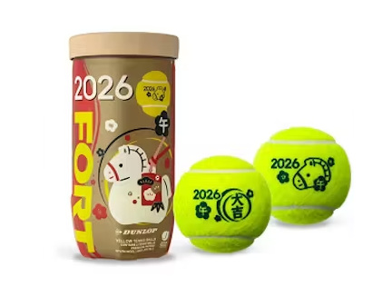 住友ゴムグループのダンロップスポーツマーケティングは、来年の干支である「午」のイラストと「2026」の文字をプリントした硬式テニスボール「ダンロップ フォート 干支ボール(2026年「午」)」(2球入/ペット)および、「ダンロップソフトテニスボール(公認球)干支ボール」を11月24日から数量限定で販売する。