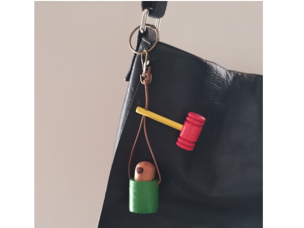 「モグラたたきチャーム」(木工作家 seki omocha)は、いつでもどこでも、モグラたたきが楽しめるチャーム。何度叩いても、モグラがひょっこり出てくる。