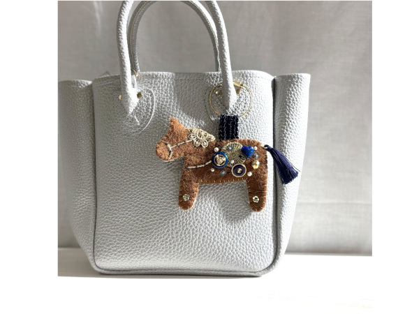 「午年・馬モチーフバッグチャーム」(手刺繍作家 Hi-na)は、羊毛フェルトで作られた馬のモチーフに、ボタンやレース、ビーズ、スパンコールなどを一つひとつ丁寧に手刺繍して作られたバッグチャームとなっている。